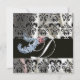 INVITACIÓN PLUMAS DE DIAMANTE SEDA NEGRA PLATEADA DAMASCO MON
