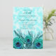 Invitación Plumas de pavo real azul turquesa brillantes 18º