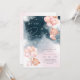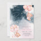 Una invitación de Baby Shower con temática de osito de peluche. El diseño de Baby Girl Shower incluye texto de 'podemos esperar con cuidado', sobre una acuarela rosa salpicando de fondo estrellado por la noche con osos flotando con globos rosados.