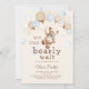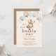 Podemos esperar con ansiedad la invitación de un niño a una ducha de bebé. Diseño de temática de oso a la moda en azul, marrón y beige. Cuenta con acuarela tierno oso de peluche, globos y fuente de escritura. Perfecto para una elegante celebración tipo boho de la ducha para niños. Personaliza con tus propios detalles. Invitaciones Zazzle impresas o una plantilla imprimible digital de descarga instantánea.