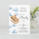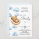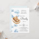 "Podemos esperar con cuidado" Baby Boy Shower Invitation, presenta un encantador ilustracion acuarela de un oso durmiendo sobre un fondo de nubes esponjosas. Este adorable diseño le da un toque de fantasía a su celebración especial, ideal para acoger la llegada de un niño. Con sus fantásticas obras de arte y su suave paleta de colores, esta invitación hará que su bebé se sienta como en casa. Creado por diseños de SweetFind