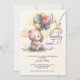 Un oso de peluche lindo y cariñosamente tierno sostiene un montón de globos y las palabras "Podemos esperar..." junto con los detalles de su fiesta aparecen en esta invitación a una ducha de bebé neutral de género con registro, rifa de pañales y libros para la información de los bebés en la espalda. DESCARGA INSTANTÁNEA, IMPRESIONADA o ambas. COINCIDIENDO elementos de nuestra colección.