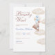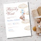Celebra la próxima llegada con esta encantadora invitación a la ducha azul acuarela "We Can Bearly Wait". Con un adorable oso de peluche sosteniendo un globo a la derecha, rodeado de nubes suaves, esta invitación capta la emoción y la dulzura de dar la bienvenida a uno pequeño. Los suaves tonos azules aportan un toque sereno, perfecto para una celebración divertida y acogedora