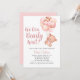 We Can Bearly Wait Chica Baby Shower Invitation presenta un adorable tema de oso, mostrando un ilustracion pintado a mano de un cachorro dulce sosteniendo globos. El texto con encanto exclama: '¡Podemos esperar rápidamente!' Esta invitación es perfecta para celebrar una ducha de bebé, añadiendo un toque de cortesía a la ocasión especial.