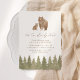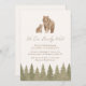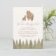 Invitar a amigos y familiares a celebrar a un pequeño en el camino con esta invitación a la ducha con temática de bosques, con pinos acuarelas y osos en colores suaves.