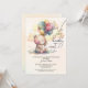 Un oso de peluche lindo y cariñosamente tierno sostiene un montón de globos y las palabras "Podemos esperar..." junto con los detalles de su fiesta aparecen en esta invitación a una ducha de bebé neutral de género. COINCIDIENDO elementos de nuestra colección.