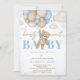 ¡Celebra la próxima llegada de tu pequeño con nuestra invitación de Baby Shower "We Can Bearly Wait"! Un bonito diseño con un adorable oso marrón adornado con un bonito arco azul, con globos marrones y azules. La escena está ambientada en un marco de ensueño de nubes esponjosas y estrellas brillantes, creando una invitación caprichosa y reconfortante. Haz que tu ducha de bebé sea inolvidable con esta encantadora invitación. BBS388