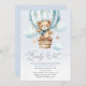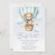 pequeño niño azul floral tema simple escritura letras, podemos esperar con cuidado la plantilla de la invitación a la ducha bebé. El texto y los colores se pueden editar.