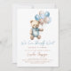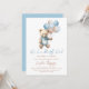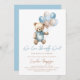 Invitación de moda para los niños de la ducha de bebé azul con adorable oso de peluche con globos pastel azules y marrones, redacción de "Es un niño" y azul pastel en el fondo. Elementos coincidentes disponibles.