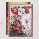 Colorido expresivo arte vintage fino. Miniatura medieval alemana de 1200. Diseño elegante con efectos de pergamino marrón envejecido fácilmente personalizable con tu texto e iniciales para fiestas de cumpleaños, celebraciones de aniversario o cualquier evento que desees