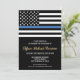 Honor the dedication and hard work of a new law enforcement officer with this customizable police graduation invitation. Featuring the police force flag with bold black and white stripes and a proud thin blue line, this design symbolizes strength, service, and sacrifice. The invitation is personalized with the graduate’s name and party details, making it a memorable keepsake for friends, family, and fellow officers. Perfect for celebrating a police academy graduation, promotion, or milestone in a future officer’s career. Invite your guests in style and show support for the newest member of the thin blue line community.
