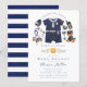 Celebrate your little officer on the way with this adorable police-themed baby shower invitation. Featuring a charming baby police outfit, cute accessories, and a coordinating navy blue stripe backing, this design blends playful charm with a clean, modern look. Perfect for boy baby showers, law enforcement families, or “Calling All Units” themed events, this invitation creates a polished and memorable first impression. Fully customizable for your event details.