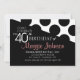 Este elegante fiesta de celebración de la colina presenta colores en blanco y negro con texto rosa y puntos de polka esparcidos en un fondo diagonal. Es simple y elegante para un evento elegante de cuarenta años para una mujer madura.