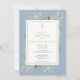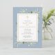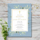 Con delicadas hojas de acuarela y un elegante crucifijo dorado, esta elegante invitación de bautizo | bautizo se puede personalizar con su información especial, con un fondo azul polvoriento en el reverso. Diseñado por Thisisnotme©