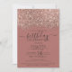 Invitación Polvo Rosa Dorado Brillante Confeti Cumpleaños
