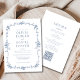 Esta elegante invitación de inspiración victoriana presenta una estética francesa vintage en una intemporal paleta azul. Con un monograma refinado y un código QR incorporado, combina el encanto clásico y la comodidad moderna para una invitación boda verdaderamente sofisticada.