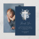 polvoriento diseño azul floral, azul y blanco, bautismo fotográfico personalizado y carta de agradecimiento. El texto y los colores se pueden editar.