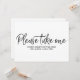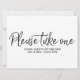 Invitación "Por favor, tome uno" Letrero de Recuerdos de Boda