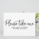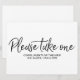 Un elegante letrero de regalos de boda con letra a mano que dice "Por favor, tome uno"