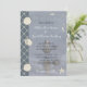 Teniendo su boda en la playa, si tan estas invitaciones pudieron ser los sus para usted. Tactos náuticos de azules, de seashells, de la red de la cuerda, de estrellas de mar, y de una foto aligerada de una gaviota en el borde de las aguas de la playa como el fondo principal. La parte trasera tiene el mismo color azul sólido que en el lado izquierdo de esta invitación con una cuerda y una estrella de mar y otra vez de las palabras "por la costa" que puede todos ser quitada. La parte delantera apenas necesita su propia información del boda terminarla.