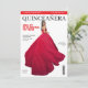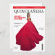 Invitación audaz de la quinceañera al estilo editorial, que incluye una foto de fondo de personalizable del chica de cumpleaños con un elegante overlay transparente. Diseñado con un llamativo texto negro y rojo, este diseño le aporta un toque moderno e inspirado a su celebración Sweet 15
