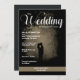 ¡Totalmente nuevo para bodas 2019! Este diseño al estilo de una portada de revista presenta una silueta de una pareja muy enamorada en el entorno de un bosque encantado. La elegante letra y un fondo en carbón negro completan el aspecto. Hace una invitación de boda encantadora.