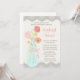 Esta elegante invitación es perfecta para su ducha nupcial de primavera o verano o boda en el jardín. Las fronteras tienen el aspecto de encaje prensado de papel con un estilo rústico dulce, luego se acentúa con un frasco de albañil con un lazo dulce lleno de agua y un ramo de flores de primavera en corales, naranja pálido, amarillo junto con toques de marrón y verde. Fácilmente personalizar para cualquier evento que le gustaría, perfecto para un cumpleaños de damas, club se reúne, té de la tarde. Muchas cosas a juego junto con una variedad de colores - morado, amarillo, rosa. ¡Simplemente háganme saber lo que necesitan!DGGallery@hotmail.com