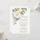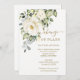 Elegante diseño de cartas con flores color crema blanco acuarela y hojas verdes, sobre un fondo blanco. En el ramo de las flores blancas traseras. Utilice la herramienta Personalize para agregar su información. Para ver elementos coincidentes, por favor, visite mi Colección de Flores Blancas Bloom