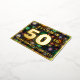 La parte delantera de este divertido diseño de postal de invitación a Relieves metalizados de cumpleaños número cincuenta incluye un nombre personalizado, un gran número "50", el mensaje "¡FIESTA CUMPLEAÑOS!" y una frontera. El fondo del frente tiene un alegre y colorido patrón que se asemeja a los fuegos artificiales de celebración reventados. La parte posterior incluye detalles personalizados sobre el evento, como la fecha, hora, ubicación y cualquier otra información que pueda ser importante. Las invitaciones a personalizables como estas pueden ser una manera divertida de invitar a los invitados a una reunión de cumpleaños que se lleva a cabo en celebración del cumpleaños número 50 de alguien. [~Z0000609]
