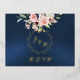 The Blush Floral & Wreath RSVP - Blue Foil Invitation Postcard features a botanical wreath, bride & grooms first initials in foil and a blush pink floral bouquet on a blue background. The back has details for the recipient to fill out. Designed to coordinate with the "Floral & Foil Botanical Wreath" Wedding Collection. To change details, click «Personalize». To move the text or change the text size, font, or color click «Click to customize further» initials