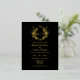 boda de Relieve metalizado con monograma botánico negro y dorado Invitación postal