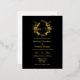 Invitación Postal Con Relieve Metalizado boda de monograma botánico negro y dorado