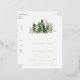 Elegantes postales de invitación a la boda rústica con nombres y detalles bodas en letras de Relieve metalizado dorado con pinos de color verde anaranjado y color salvia. Las invitaciones para la boda de otoño o invierno incluyen un hermoso guión de caligrafía de Relieve metalizado dorado. Las postales de la invitación a la boda en el bosque se invierten para mostrar su dirección de retorno, los detalles de RSVP y el sitio web del boda. Diseñado para coordinar con nuestra colección de bodas Rustic Pine Forest.