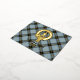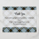 Clan Bell crest badge surrounded by a strap and buckle over tartan background. Foil printed thank you card. Custom text.