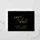 Esta elegante caligrafía de Relieve metalizado dorado negro salva la postal de invitación al Relieve metalizado de fecha es perfecta para un simple boda. El diseño neutro cuenta con una tarjeta minimalista decorada con una tipografía romántica y lujosa de Relieve metalizado dorado prensado.