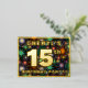 La parte delantera de este divertido y vibrante diseño de postal de invitación de Relieve metalizado de la fiesta de 15 años tiene un nombre personalizado, un gran número "15", el mensaje "¡FIESTA DE CUMPLEAÑOS!" y una frontera. El fondo del frente tiene un llamativo y multicolor estallido de fuegos artificiales de celebración inspirado en ellos. En la parte posterior se incluyen detalles personalizados sobre el evento, como la fecha, la hora, la ubicación/lugar y cualquier otra información útil. Las invitaciones al personalizable como estas pueden ser una manera divertida de hacer saber a los invitados acerca de una reunión de cumpleaños que se lleva a cabo para celebrar el cumpleaños 15 de alguien. [~Z0000609]