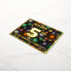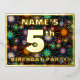 La parte delantera de este llamativo diseño de postal de invitación a Relieves metalizados de quinto cumpleaños de celebración de quinto cumpleaños incluye un nombre editable, un gran número "5º", el mensaje "¡FIESTA DE CUMPLEAÑOS!" y un borde. El fondo del frente presenta un patrón vibrante y colorido inspirado en los fuegos artificiales de celebración que estallan. La parte posterior incluye detalles personalizados sobre el evento, como la fecha, hora, lugar y cualquier otra información que pueda ser importante. Las invitaciones al personalizable como estas pueden ser una manera divertida de hacer saber a los invitados acerca de una fiesta de cumpleaños/reunión que se lleva a cabo en celebración del quinto cumpleaños de alguien. [~Z0000609]
