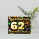 La parte delantera de este divertido diseño de postales de invitación a Relieves metalizados de fiesta de sesenta y dos años presenta un nombre personalizado, un gran número "62", el mensaje "¡FIESTA DE CUMPLEAÑOS!" y un borde. El fondo del frente presenta un alegre y colorido estampado de fuegos artificiales de celebración. En la parte posterior se incluyen detalles personalizados sobre el evento, como la fecha, la hora, el lugar/lugar y cualquier otra información relevante. Las invitaciones al personalizable como estas pueden ser una manera divertida de hacer saber a los asistentes/invitados acerca de una fiesta de cumpleaños que se lleva a cabo en celebración del cumpleaños número 62 de alguien. [~Z0000609]