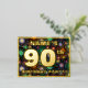 El frente de este divertido y alegre diseño de postal de invitación a Relieves metalizados de la celebración de los 90 años incluye un nombre de personalizable, un gran número "90", el mensaje "¡FIESTA DE CUMPLEAÑOS!" y una frontera. El fondo del frente tiene un emocionante patrón multicolor que se asemeja a fuegos artificiales de celebración. En la parte posterior se incluyen detalles personalizados sobre el evento, como la fecha, hora, ubicación/lugar y cualquier otra información importante. Invitaciones editables como esta pueden ser una manera divertida de invitar a invitados/asistentes a una fiesta de cumpleaños que se lleva a cabo para honrar el cumpleaños 90 de alguien. [~Z0000609]
