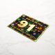 La parte delantera de este alegre y emocionante diseño de postales de invitación a Relieves metalizados de noventa y un cumpleaños incluye un nombre de personalizable, un gran número "91", el mensaje "¡FIESTA DE CUMPLEAÑOS!" y una frontera. El fondo del frente presenta un llamativo y colorido patrón inspirado en los reventados fuegos artificiales de celebración. En la parte posterior se incluyen detalles personalizados sobre el evento, como la fecha, la hora, la ubicación/lugar y cualquier otra información útil. Invitaciones personalizadas como estas pueden ser una manera divertida de invitar a los invitados a una reunión de cumpleaños que se lleva a cabo para celebrar el cumpleaños 91 de alguien. [~Z0000609]