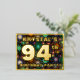 El frente de esta emocionante y animada celebración de 94 años, el diseño de una postal de invitación a Relieves metalizados, incluye un nombre de personalizable, un gran número "94", el mensaje "¡FIESTA DE CUMPLEAÑOS!" y una frontera. El fondo del frente tiene un llamativo patrón multicolor que se asemeja a los fuegos artificiales de celebración. En la parte posterior se incluyen detalles personalizados sobre el evento, como la fecha, hora, lugar/ubicación y cualquier otra información importante. Las invitaciones personalizadas como estas pueden ser una manera divertida de hacer saber a los invitados acerca de una fiesta de cumpleaños/reunión que se lleva a cabo en celebración del cumpleaños 94 de alguien. [~Z0000609]