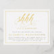 Invitación a postales de Relieve metalizado de la Fiesta de Aniversario de la Sorpresa Dorada y Blanca por Eugene Designs. Envíe estas simples invitaciones en blanco y oro y comience su fiesta sorpresa con un mensaje moderno. En el frente, en un elegante guión de estilo escrito a mano está el texto "shhh..." en Relieve metalizado dorado.