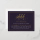 Relieve metalizado de la fiesta de cumpleaños Gold & Purple Surprise por Eugene Designs. Envíe estas invitaciones minimalistas moradas y doradas y empiece su fiesta sorpresa con estilo! En el frente, en un elegante guión de estilo escrito a mano está el texto "shhh..." en Relieve metalizado dorado.