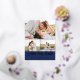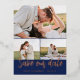 Bodas guardar la postal de fecha que puedes personalizar con tres de tus propias fotos, dos más pequeñas y una más grande. Guardar nuestra fecha se escribe a través de la postal en un guión de Relieve metalizado de oro rosa contra un fondo azul marino. Agregue sus nombres y fecha de boda en un tipo de letra intemporal elegante. Relieve metalizado de oro Rosa guardar la postal de fecha personalizada con fotos.