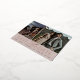 Una tarjeta postal moderna para guardar la fecha diseñada para alojar dos fotos de compromiso alineadas una al lado de la otra. "Guardar la fecha" aparece debajo del bloque de Relieve metalizado de oro rosa y la inscripción de guiones, con sus nombres, fecha de boda y ubicación de boda debajo. Las postales se invierten para mostrar detalles adicionales de guardar la fecha, incluido el sitio web del boda, con la dirección de devolución y el espacio para la dirección del destinatario.