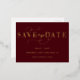 Borgoña Script elegante caligrafía manuscrita Boda Guardar la tarjeta postal de Relieve metalizado de Invitación de fecha
