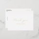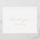 Simple Boda de Relieve metalizado de oro Gracias Postcard con "gracias" en caligrafía junto con sus nombres. El reverso tiene tu mensaje personalizado de agradecimiento y dirección de retorno para un envío fácil. Un diseño minimalista con tipografía de moda para un toque elegante.