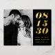 Moderna tipografía de fecha negrita Guardar la postal de anuncio de fecha | Un personalizable guarda la postal de fecha con tipografía audaz y minimalista sobre fondo negro. Este Relieve metalizado dorado salva la postal de fecha es perfecto para cualquier tema boda y cualquier temporada. Personalice agregando los detalles de su foto y boda.