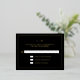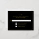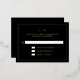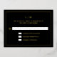 Sencilla tarjeta RSVP de boda en Relieve metalizado negro y dorado con un diseño moderno y elegante con su monograma de dos letras en la parte superior y sus detalles rodeados de un borde delgado. Una moda y un diseño de diseño, ideal para una pareja minimalista.