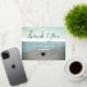 Tarjeta de agradecimiento con montañas blue ridge, nombre de la pareja y diseño de corazón. Este diseño presenta una serena cordillera de montañas blue ridge con un bosque de árboles de hoja perenne.